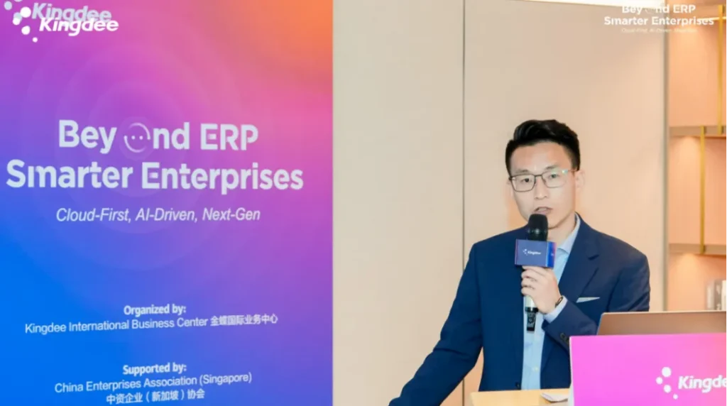 In his opening remarks, Mr. Fu Xiaohui, Secretary-General of the Chinese Enterprises Association (Singapore), extended warm congratulations on Kingdee’s “Beyond ERP, Smarter Enterprises” event. He emphasized that amid rapid advancements in AI technology and a volatile global economic landscape, enterprises urgently need technological innovation to achieve cost reduction, efficiency gains, and risk management. Noting Singapore’s role as a global commodity trading hub with a transaction volume of $1.8 trillion in 2023, Mr. Fu highlighted that traditional ERP systems struggle to address the complexities of cross-border trade. Kingdee’s AI solutions tailored for commodity trading perfectly align with enterprises’ pressing needs for intelligent upgrades.
