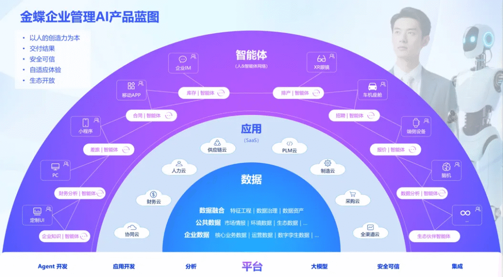 “Kingdee will fully transform into an ‘enterprise management AI company’. We believe that every enterprise will become an intelligent company in the future, and helping them achieve digital and intelligent transformation is precisely Kingdee’s mission of ‘Empowering Enterprises, Achieving Extraordinary’ in the AI era,” said Zhang Yong, President of Kingdee Group. He stated that Kingdee will take artificial intelligence technology as the core, integrate enterprise management theories and practices, and build a new generation of enterprise management platforms for core management scenarios such as enterprise strategy, operation, organization, human resources, and innovation.