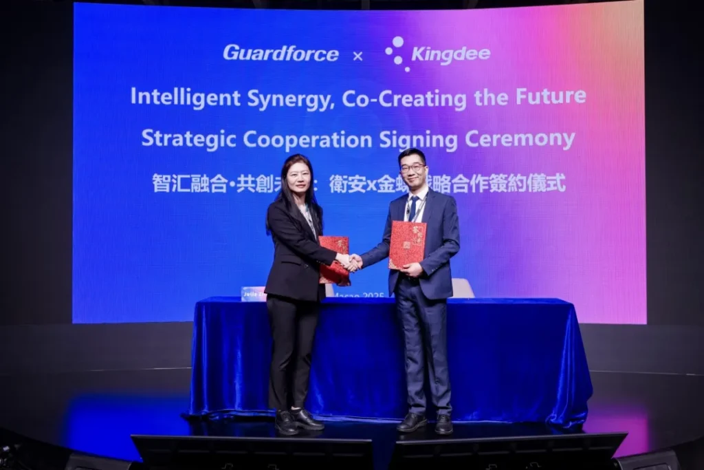 On the main stage of the conference, Kingdee Macau and Guardforce Macau officially reached a strategic cooperation. The two parties will rely on core technologies such as the central management platform of the Internet of Things, data lake analysis and AI algorithms to integrate Guardforce’s practical experience in electronic security equipment and offline service scenarios, help Guardforce achieve comprehensive intelligence in equipment management, risk early warning and emergency response, and develop an “integrated solution for smart security and facility management” to create a digital benchmark for Macau’s security industry.