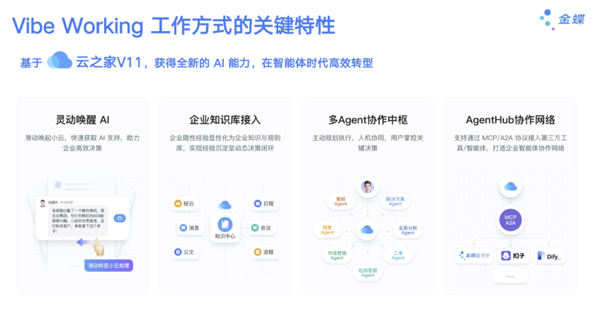 On May 20, 2025, Cloud hub officially published version V11 at the Kingdee Cloud Cosmic AI Summit. The brand new version is centered around “Vibe Working,” leveraging the Xiaoyun AI hub to drive enterprises from “everyone collaborating” to “human-machine collaboration,” attracting significant attention in the industry.