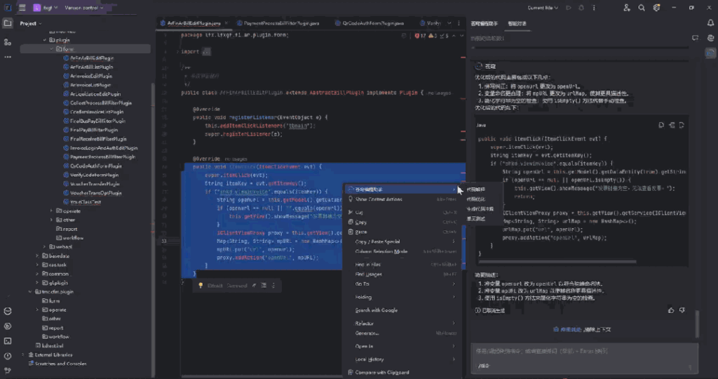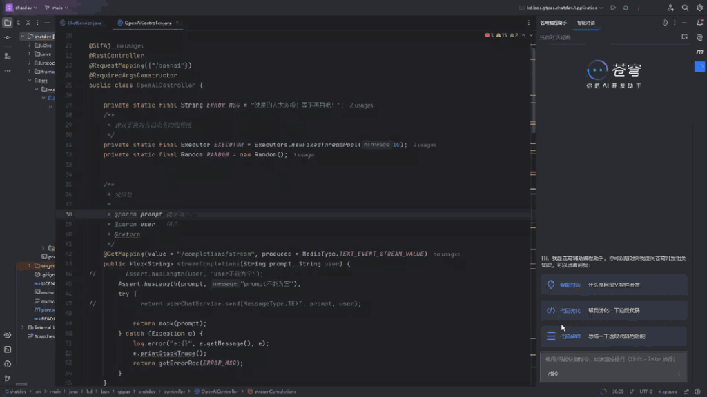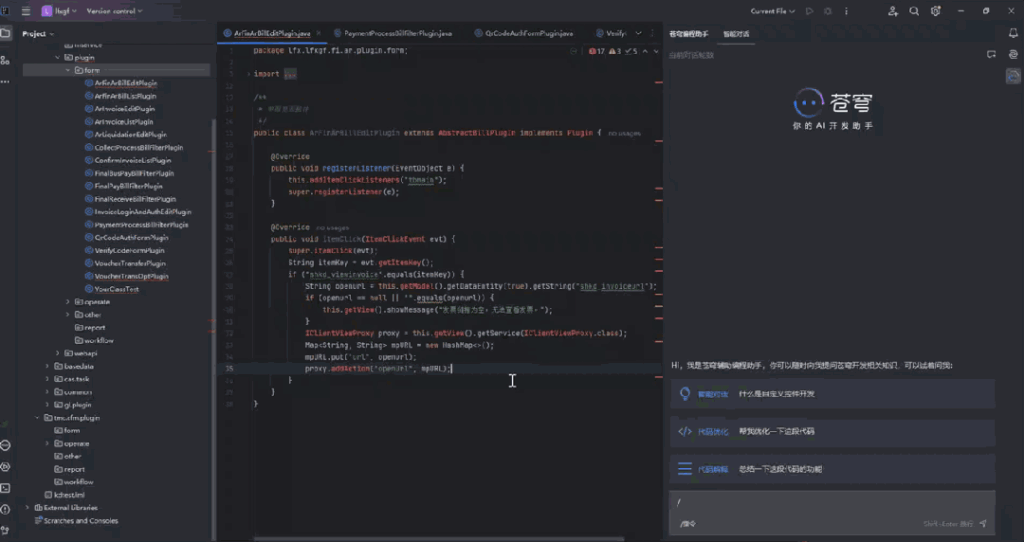 苍穹AI编程助手是基于金蝶云·苍穹平台构建的智能编码辅助工具,深度集成于开发环境,为开发者提供了全面、高效的编码支持。该助手融合了自然语言处理、机器学习和深度学习等先进技术,具备智能对话、代码生成、生成代码注释、代码解释、代码优化等多重能力,助力开发者高效完成开发工作,显著提升代码质量。
