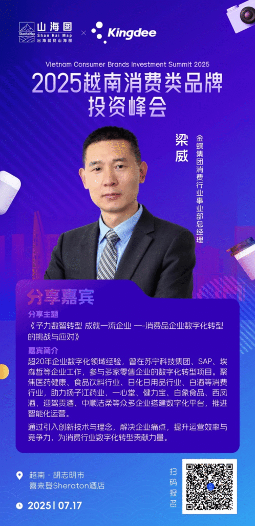 金蝶诚邀您出席2025越南消费类品牌投资峰会。届时,欢迎您莅临金蝶展位,与我们面对面交流,共同探讨消费品牌在越南及更广阔市场的发展机遇与未来路径。我们期待在胡志明市与您相见!