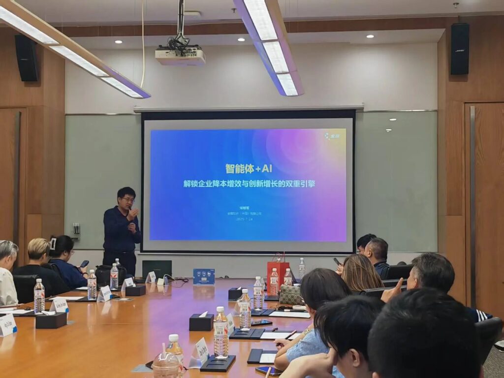 金蝶集团资深顾问宋明军老师则重点介绍了AI技术在企业管理中的创新应用。他分享了多个真实场景,包括AI助手如何辅助企业做出更智能的运营决策、实现业务流程自动化,以及通过客户行为分析提升运营效率。新加坡企业家们对这些可复制、可落地的应用表现出极大兴趣,并积极探讨如何结合自身业务快速试点应用。